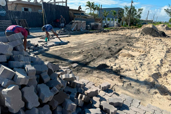 A Prefeitura de Tramandaí, por meio da Secretaria de Obras, está executando a pavimentação com blocos de concreto (PAVS) na Rua Marques do Herval, no trecho compreendido entre a Avenida João de Magalhães e a Rua Santa Fé.