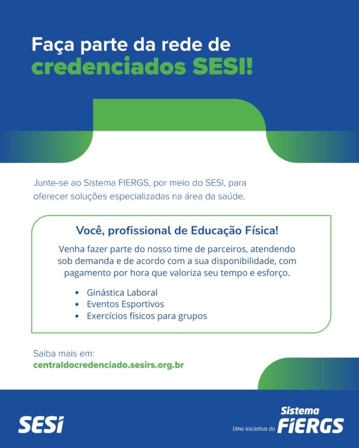 Estamos buscando profissionais para atuar junto ao SESI RS em atividades no litoral nas datas de 08/01/2026 á 07/02/2026