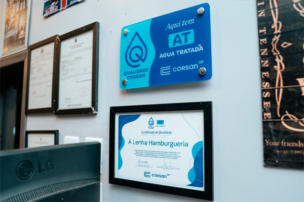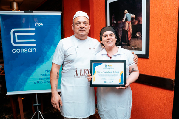 A Corsan entregou, nesta quarta-feira, 21, o Selo de Qualidade à rede À Lenha de pizzarias, restaurantes e hamburgueria, com unidades em Osório, Capão da Canoa e Atlântida, no Litoral Norte. A certificação reconhece os estabelecimentos e instituições que asseguram a qualidade da água oferecida e se destacam no consumo consciente, no tratamento de esgoto e destino correto de resíduos, e na parceria com a Companhia para boas práticas de sustentabilidade.