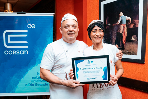 O evento foi realizado na À Lenha Pizzaria de Osório, que tem mais de 25 anos de história, com a entrega dos selos ao diretor e proprietário das empresas, Rodrigo Garcia Pires. Além de ser a primeira certificação concedida no Litoral Norte, trata-se também da primeira vez que uma rede de estabelecimentos recebe o Selo de Qualidade Corsan entre os 317 municípios atendidos pela Companhia no Estado.