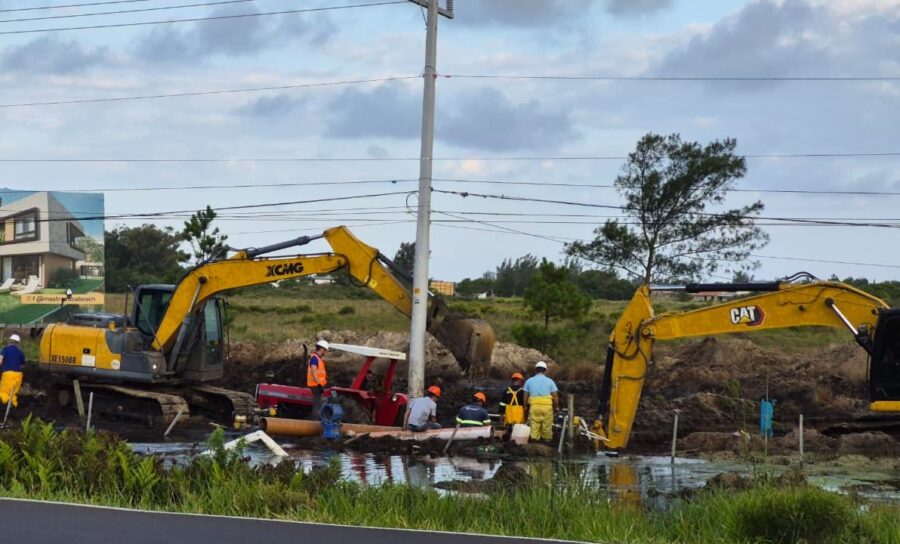 O serviço de grande porte, iniciado na tarde da quinta-feira, 8, e concluído no final da manhã desta sexta-feira, 9, pela Corsan, mobilizou duas equipes de trabalho e máquinas com tecnologia avançada devido à complexidade do local. Às margens da Estrada do Mar, em Xangri-Lá, em área de drenagem da via e de alagamentos frequentes, a tubulação que transporta esgoto bruto das residências para as elevatórias e estação de tratamento da Companhia, foi perfurada durante obra de terceiros, ocasionando intensa mobilização para a identificação e solução do problema.