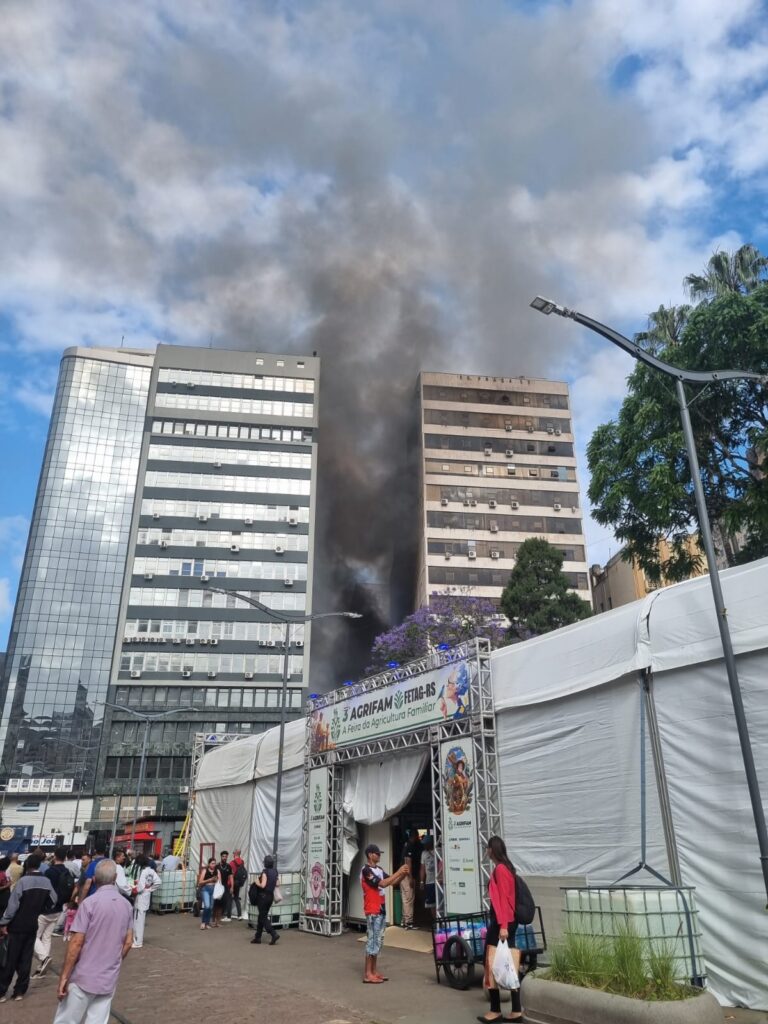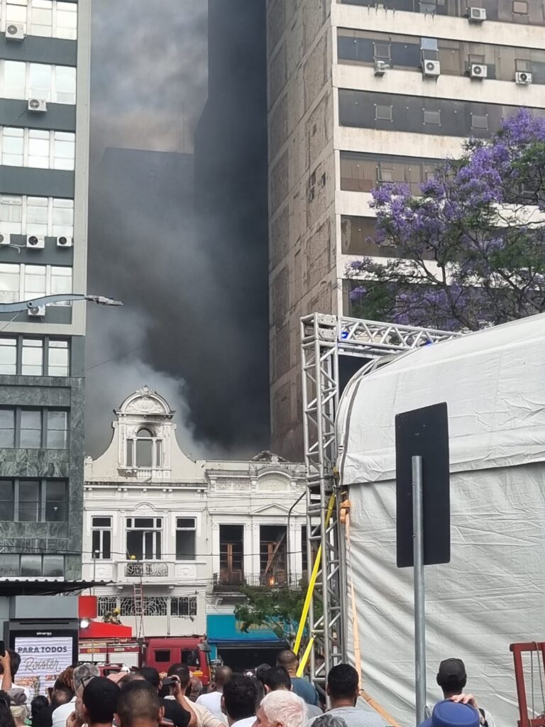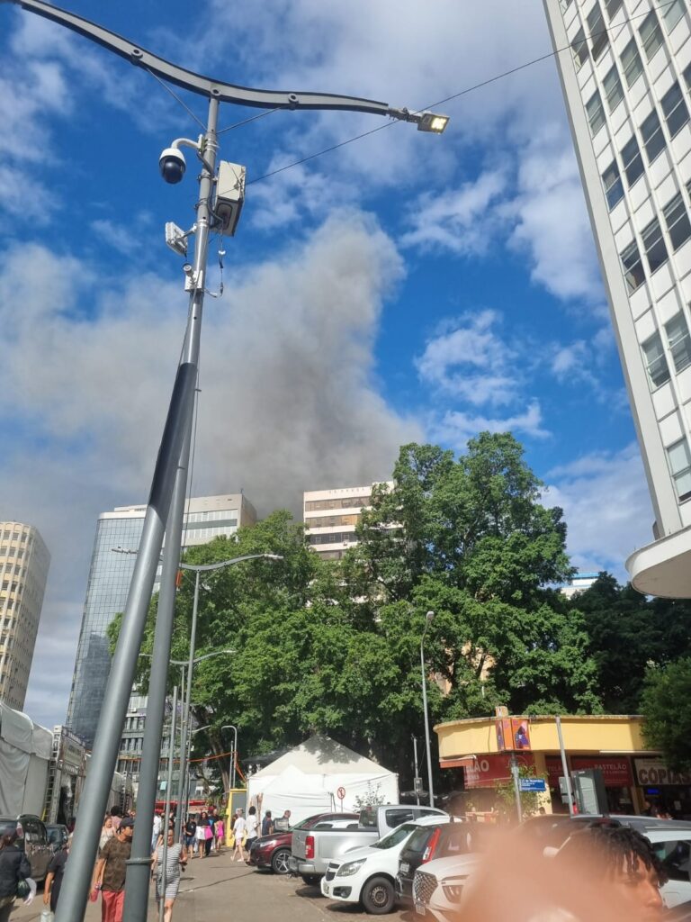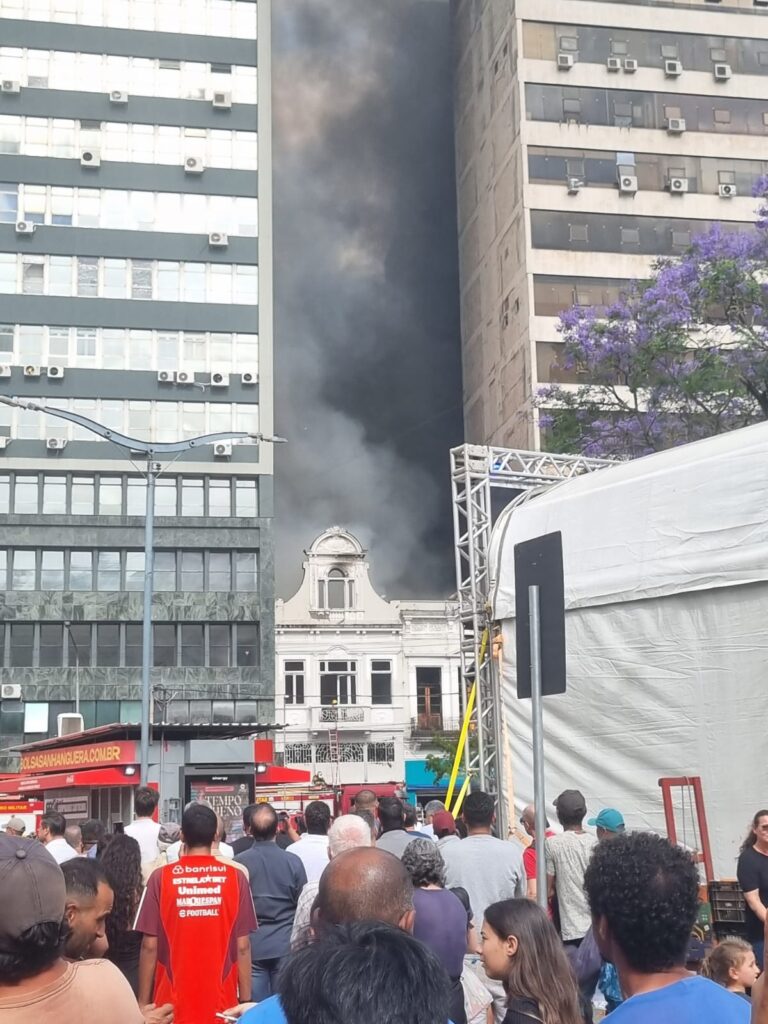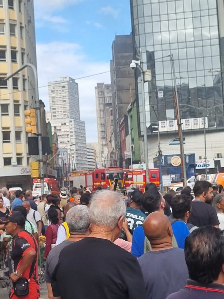 O funcionário de uma das lojas informou que o incêndio começou no segundo andar do estabelecimento e que evacuou o interior do prédio no início das chamas. Ele contou que o espaço está vazio.