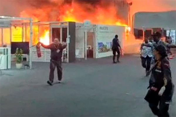 Imagens iniciais mostram o fogo atingindo estandes, assim como de pessoas utilizando extintores de incêndio para apagar as chamas. Em uma das imagens, o fogo atinge lonas e instalações da East African Community. Bombeiros foram até o local para controlar o incêndio – as labaredas de fumaça podiam ser vistas a distância, segundo relatos de moradores de Belém nas redes sociais.