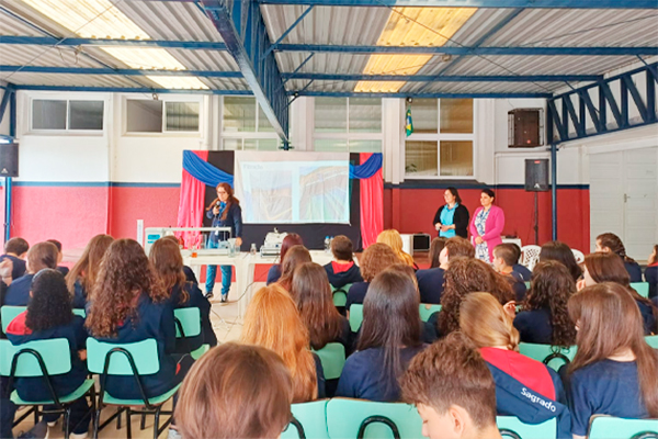 Estudantes do 7º ano da Escola de Educação Básica São Domingos, unidade do Sagrado Rede de Educação, de Torres, assistiram a duas palestras promovidas pela Corsan sobre água, esgoto e preservação ambiental, na última terça-feira, 28. A iniciativa faz parte do programa Saúde Nota 10, que busca fortalecer a relação com as comunidades e estimular a cidadania e o respeito à natureza.